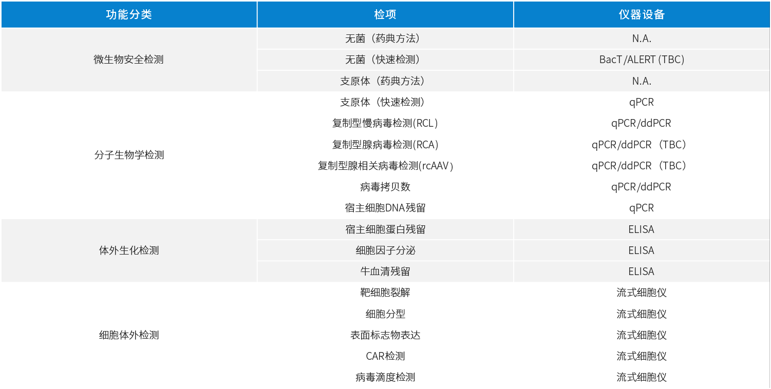 健全的质量标准,包括细菌库、细胞库、质粒载体、病毒载体、CAR-T产品等
